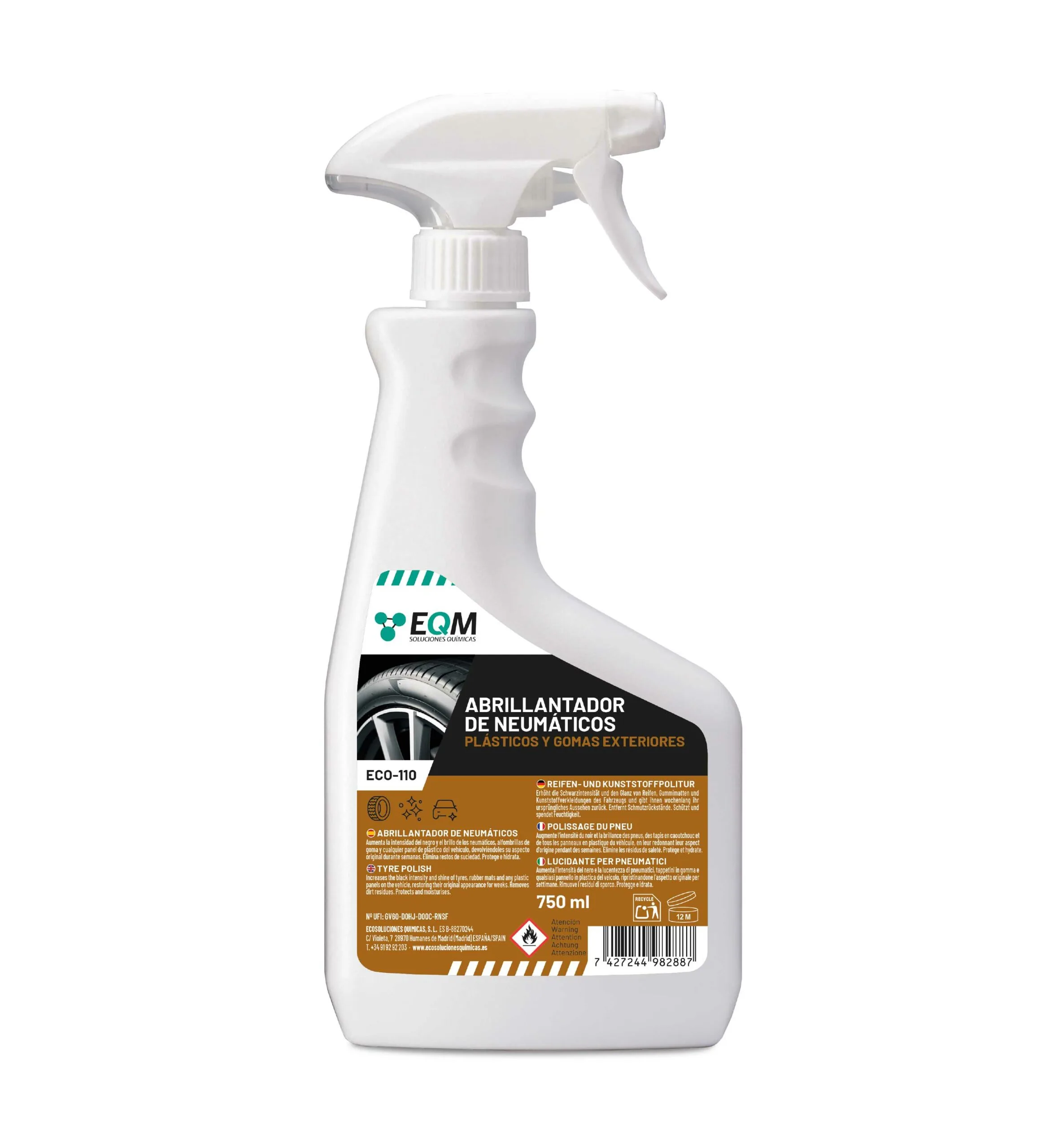 ECO-110 PROVIDES SUPERIOR PROTECTION FOR VEHICLE SEALS, PLASTICS AND RUBBER, ensuring that they maintain their softness and elasticity. It is ideal for tires and exterior plastics, providing comprehensive and long-lasting care. This ensures that the parts do not deteriorate due to the passage of time or use.