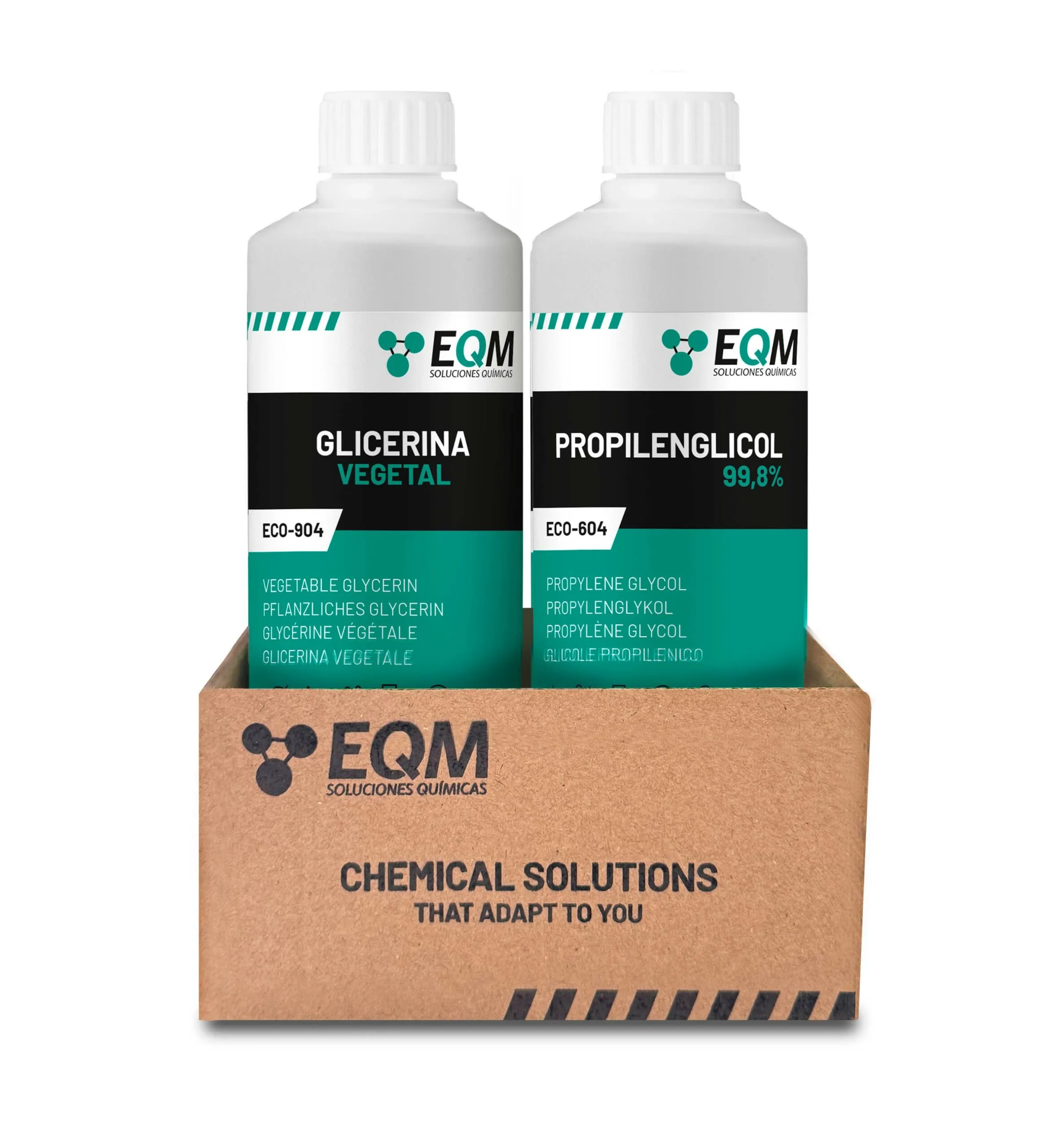 GLYCERIN AND PROPYLENE GLYCOL PACK. It offers a versatile solution for a variety of applications, from cosmetics to cleaning products. Both ingredients, of high purity, act as humectants and solvents, improving the quality and efficacy of your formulations.