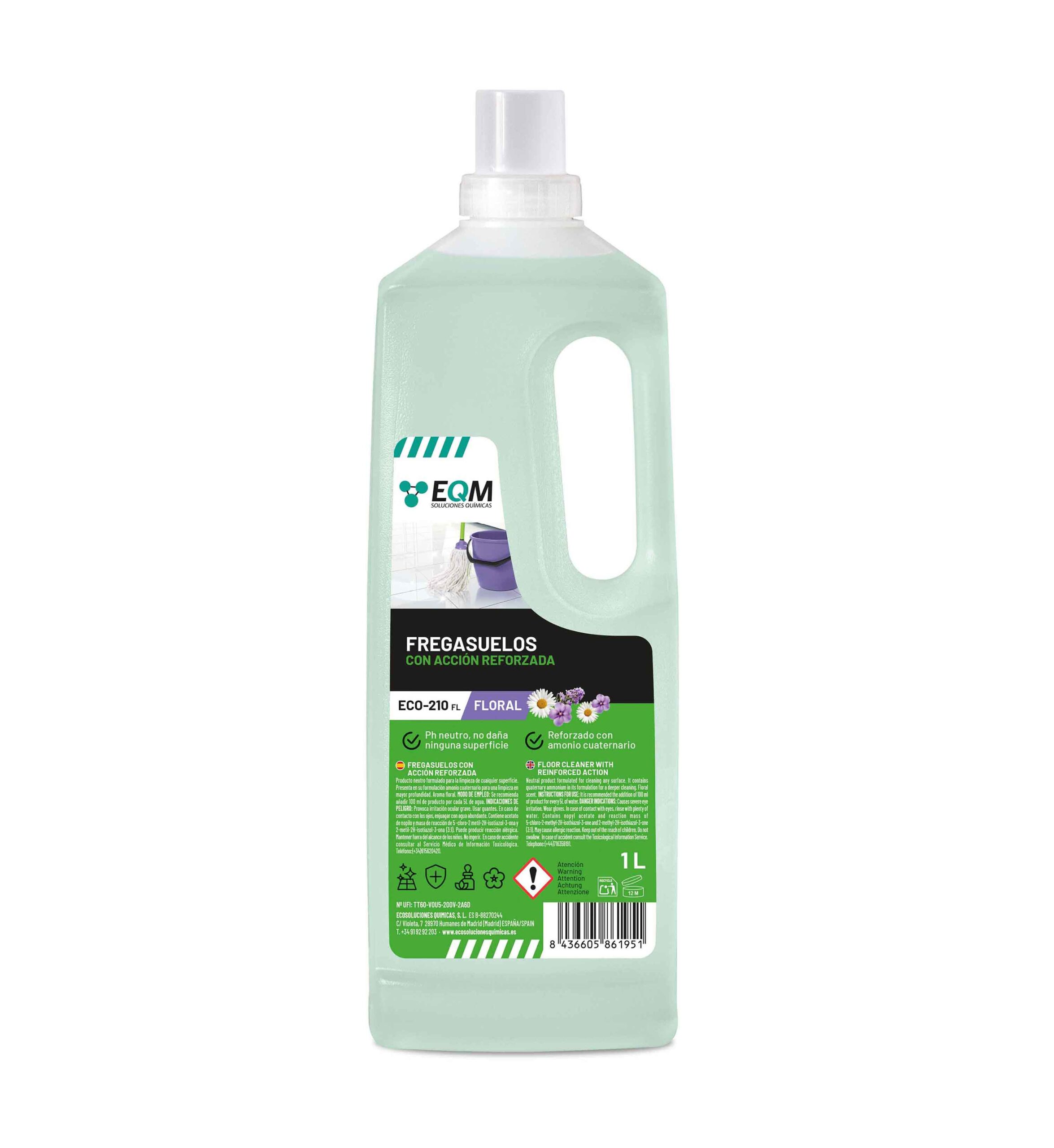 🔘 Preparación: Diluir entre 50 y 100 ml del fregasuelos en 5 litros de agua tibia, ajustando según la suciedad y el tamaño del área.