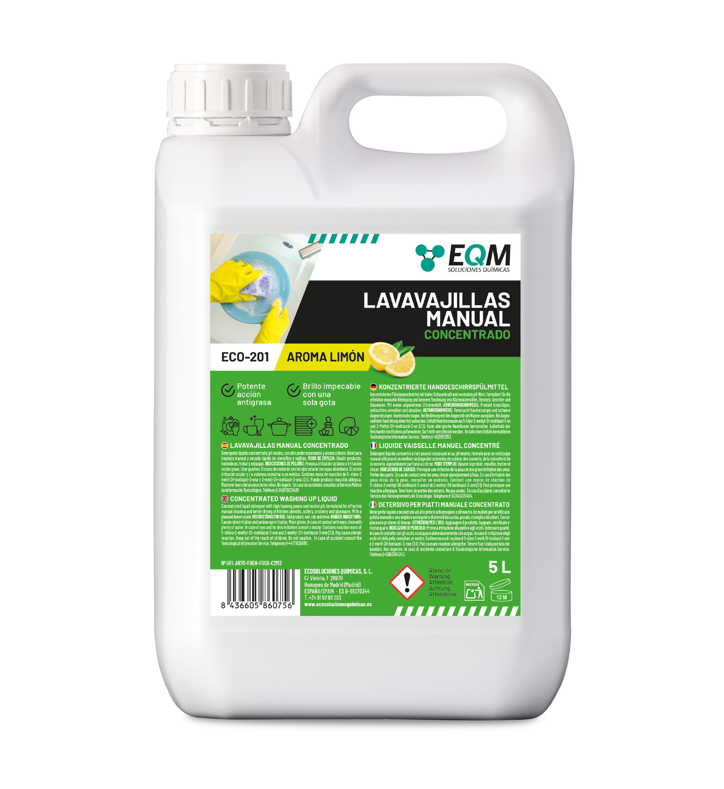 ECO-201 ES ALTAMENTE CONCENTRADO Y ECONÓMICO. Una pequeña cantidad de ECO-201 es suficiente para generar una gran cantidad de espuma y limpiar grandes volúmenes de vajilla. Esto lo convierte en una opción económica y eficiente para el lavado diario, maximizando el rendimiento del producto.