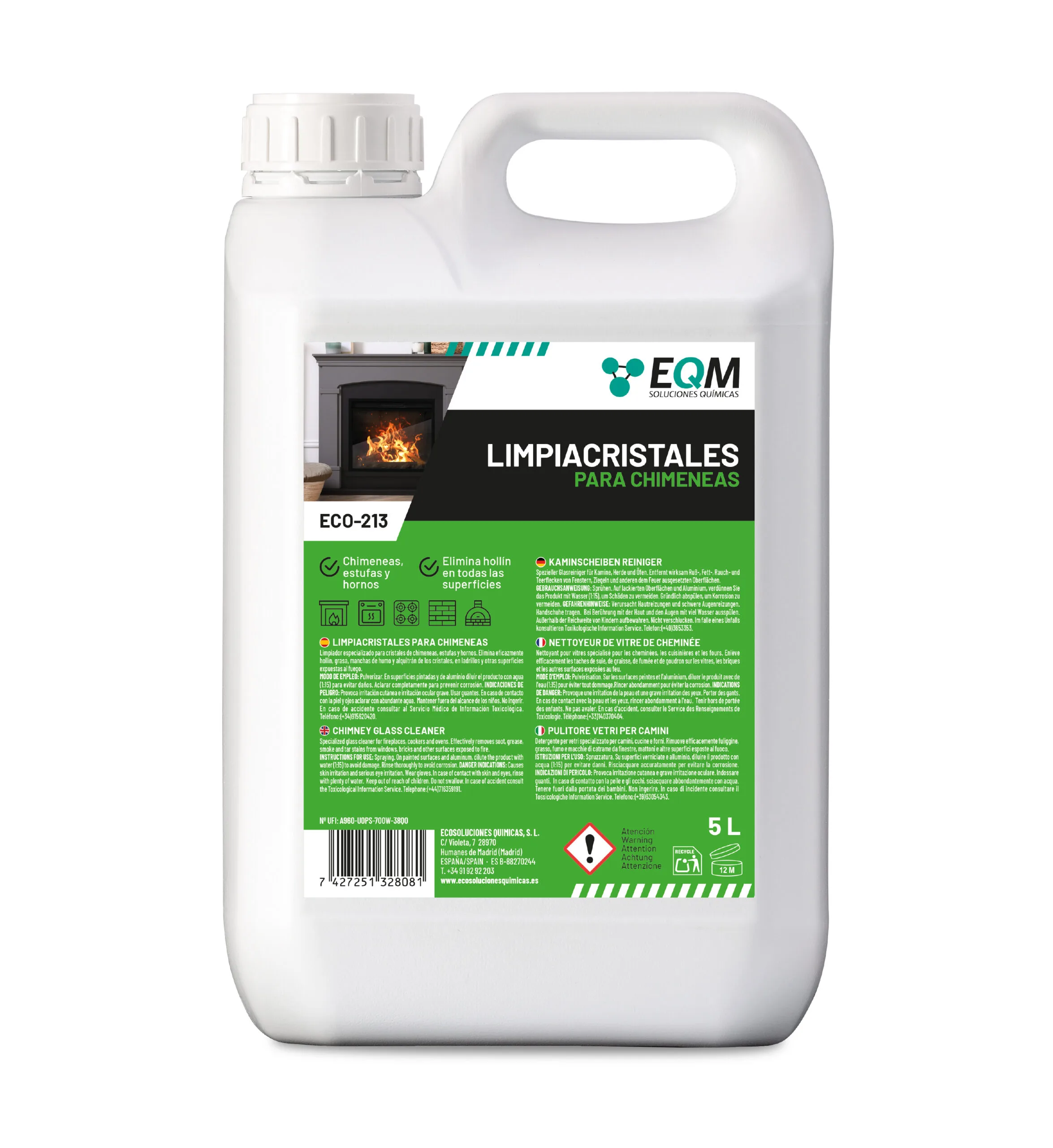 ELIMINA SUCIEDAD PERSISTENTE. ECO-213 está diseñado para eliminar rápidamente hollín, grasa, manchas de humo y alquitrán en cristales de chimeneas, estufas, inserts y hornos, asegurando una limpieza profunda en superficies expuestas al fuego.