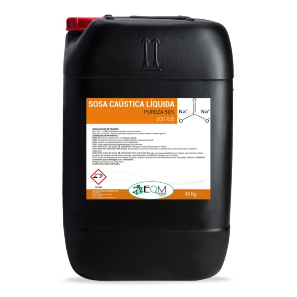 ECO-805 ES UNA SOSA CÁUSTICA LÍQUIDA ALTAMENTE EFICAZ PARA ELIMINAR GRASAS, ACEITES Y RESIDUOS ORGÁNICOS. Es ideal para limpiar superficies industriales y comerciales, como equipos industriales y áreas de cocina, logrando una limpieza eficiente y profunda.