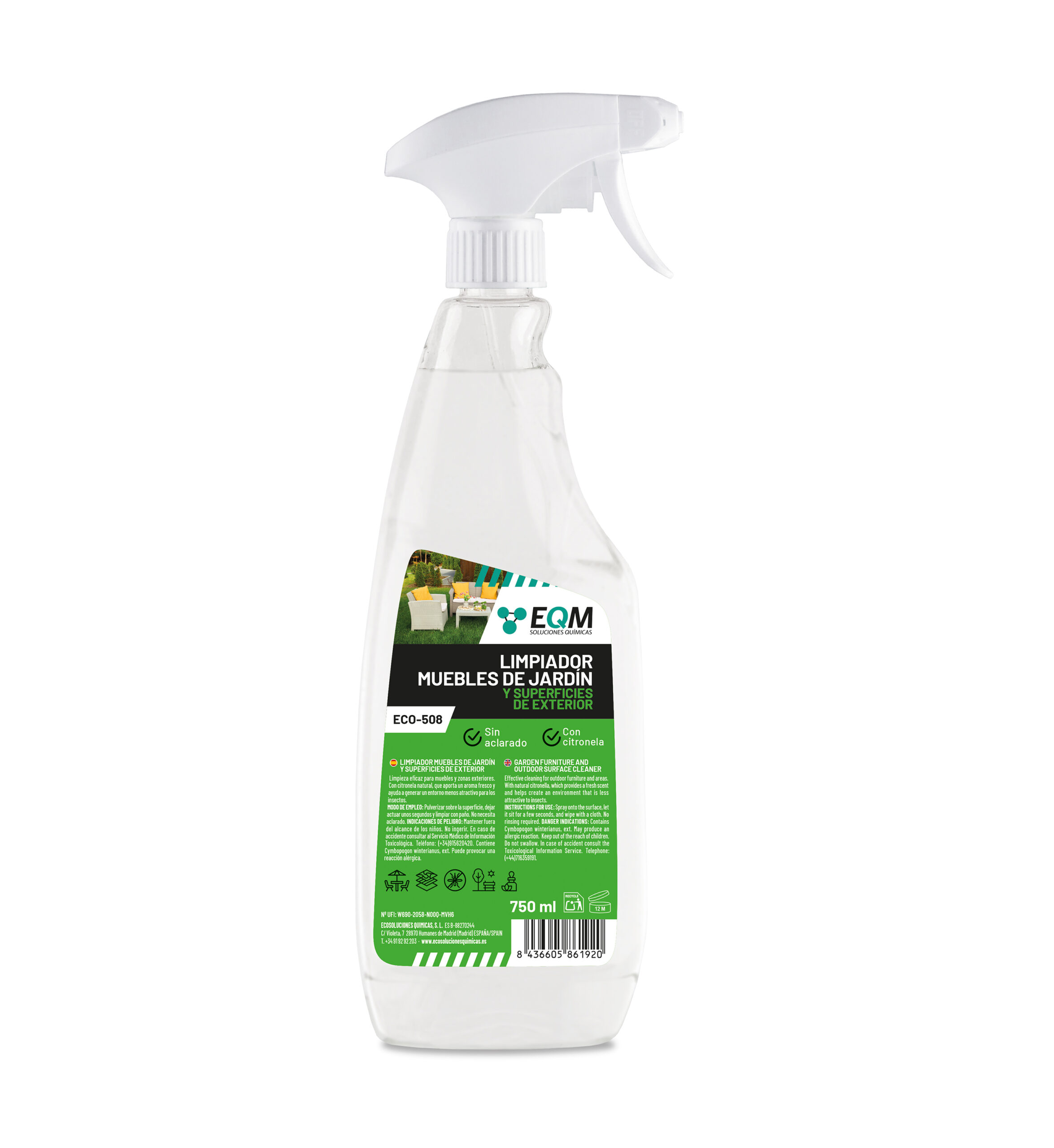 🔘 Aplicação: Pulverizar ECO-508 sobre a superfície exterior a limpar e espalhar com um pano, flanela ou esponja até eliminar a sujidade.